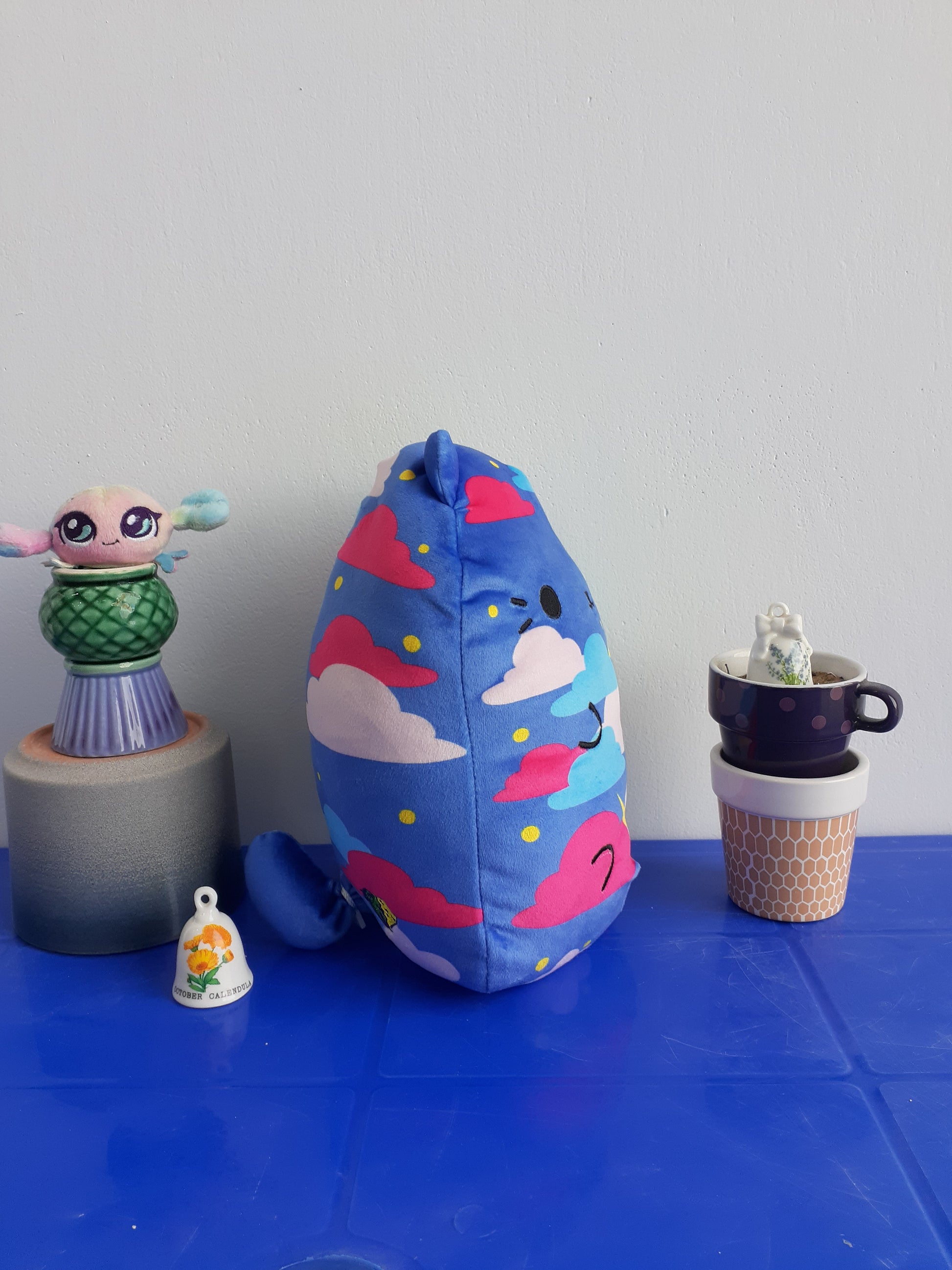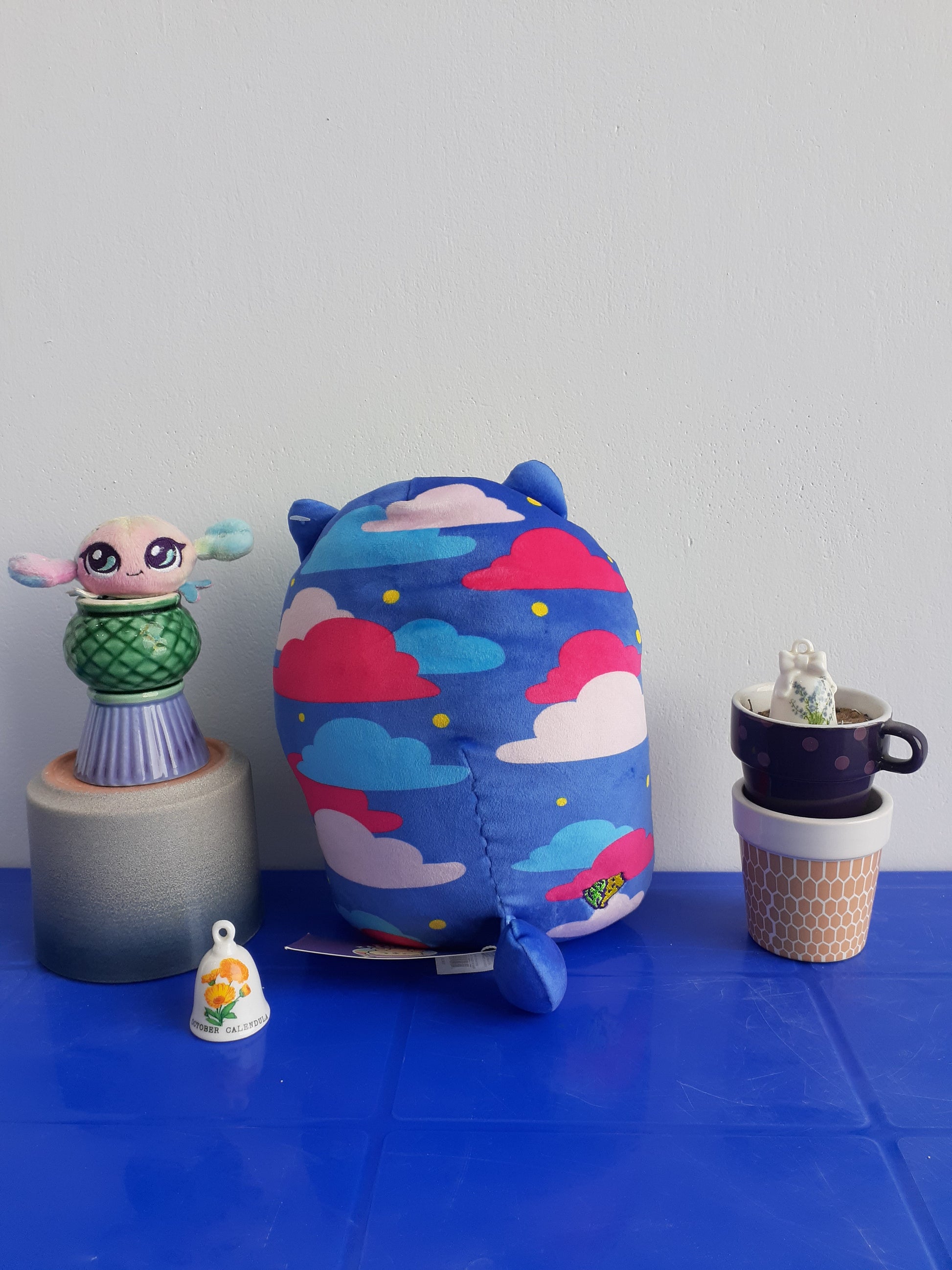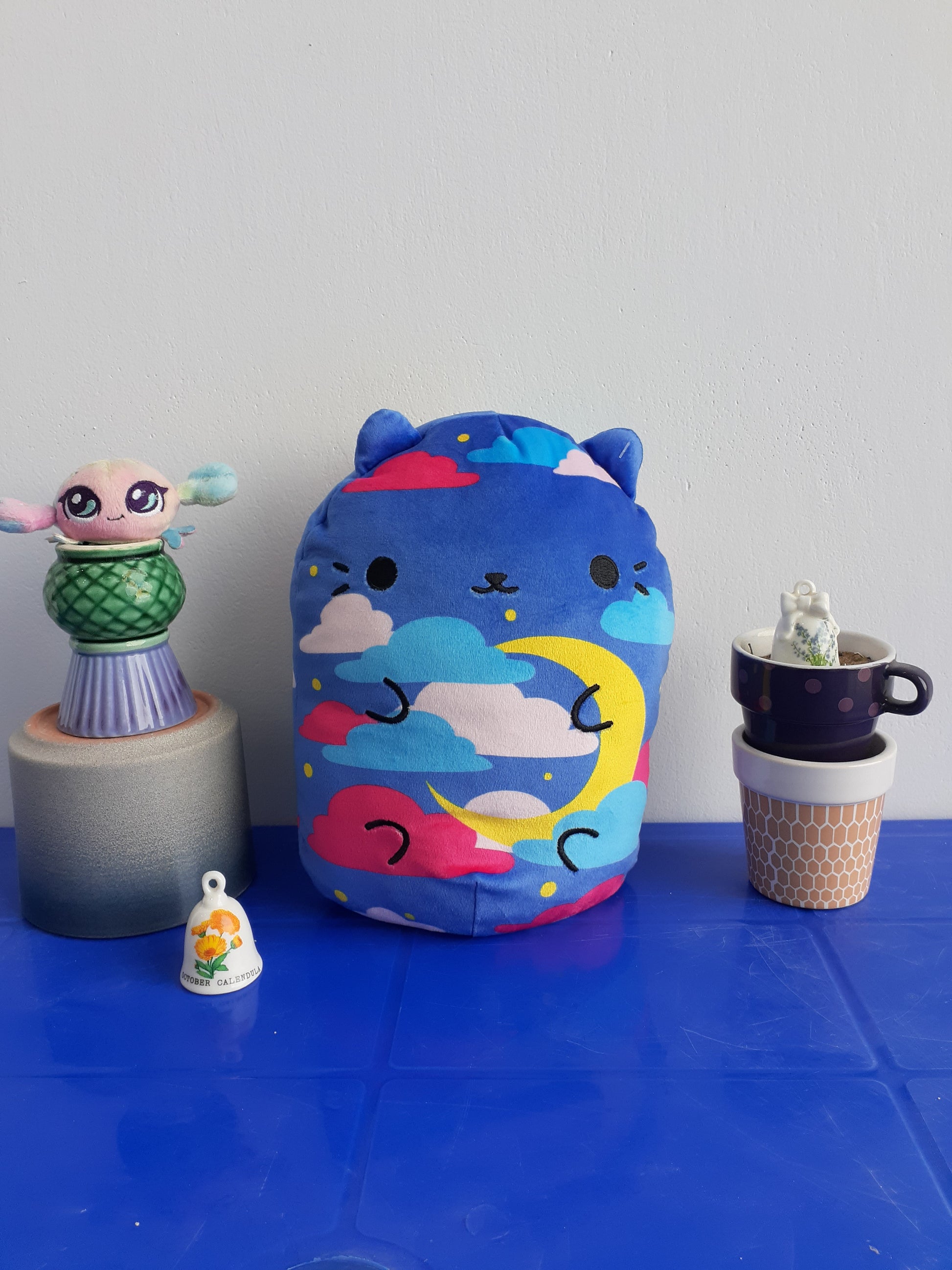 Cats vs Pickles Jumbo Huggable Pillow Plush Twinkle Kitty. New Cats Vs Pickles “Jumbos” are super-soft, colorful, bean-filled plushies. They’re about 8.6 inches tall, 7 inches wide, and have a weighted bottom. They’re so soft and feel so great to hold, you’ll never want to put them down! Cats are scared of pickles, but pickles just want love. Welcome to the world of Cats vs Pickles where lovable but misunderstood pickles are in hopeless pursuit of colourful cats. Cats vs Pickles are silly and soft and so fun to collect! Which are you? Team Cat or Team Pickle? Suitable for children 4 years and older.