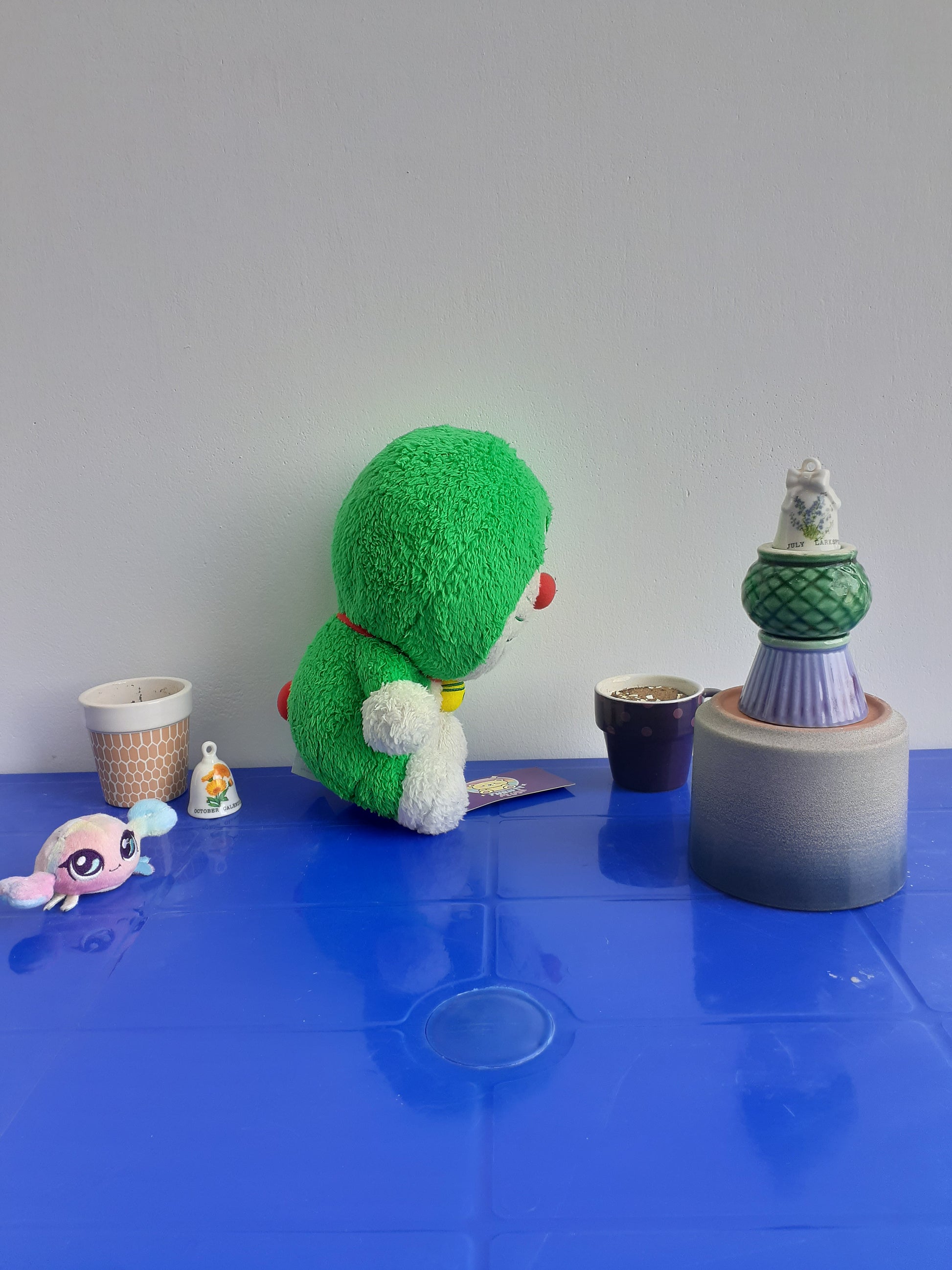 Doraemon Sustainability Mode Plush toy, which is a special edition of the Doraemon character in green. It is made from 100% recycled polyester fabric, filling, and embroidery. These plush toys were produced by Uniqlo as part of their sustainability efforts and are available in limited quantities.