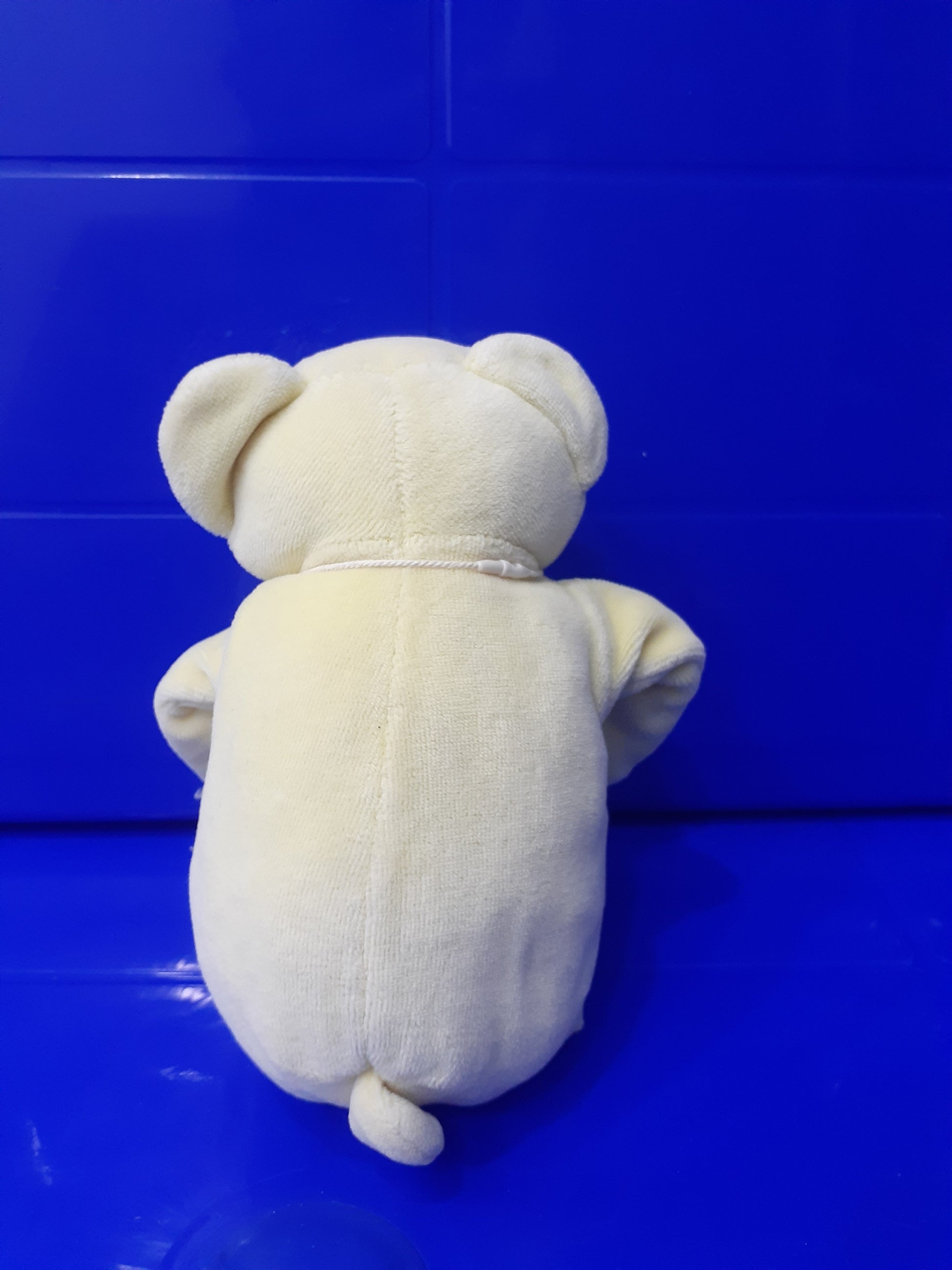 Fisher-Price Rumble Bear plush toy, specifically the yellow variant with a blue nose, which was first introduced in 1994. Here's some information about it: