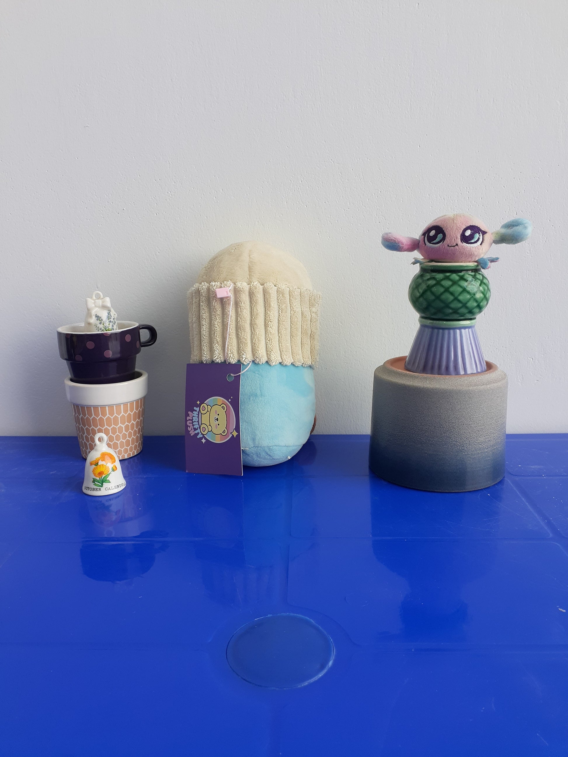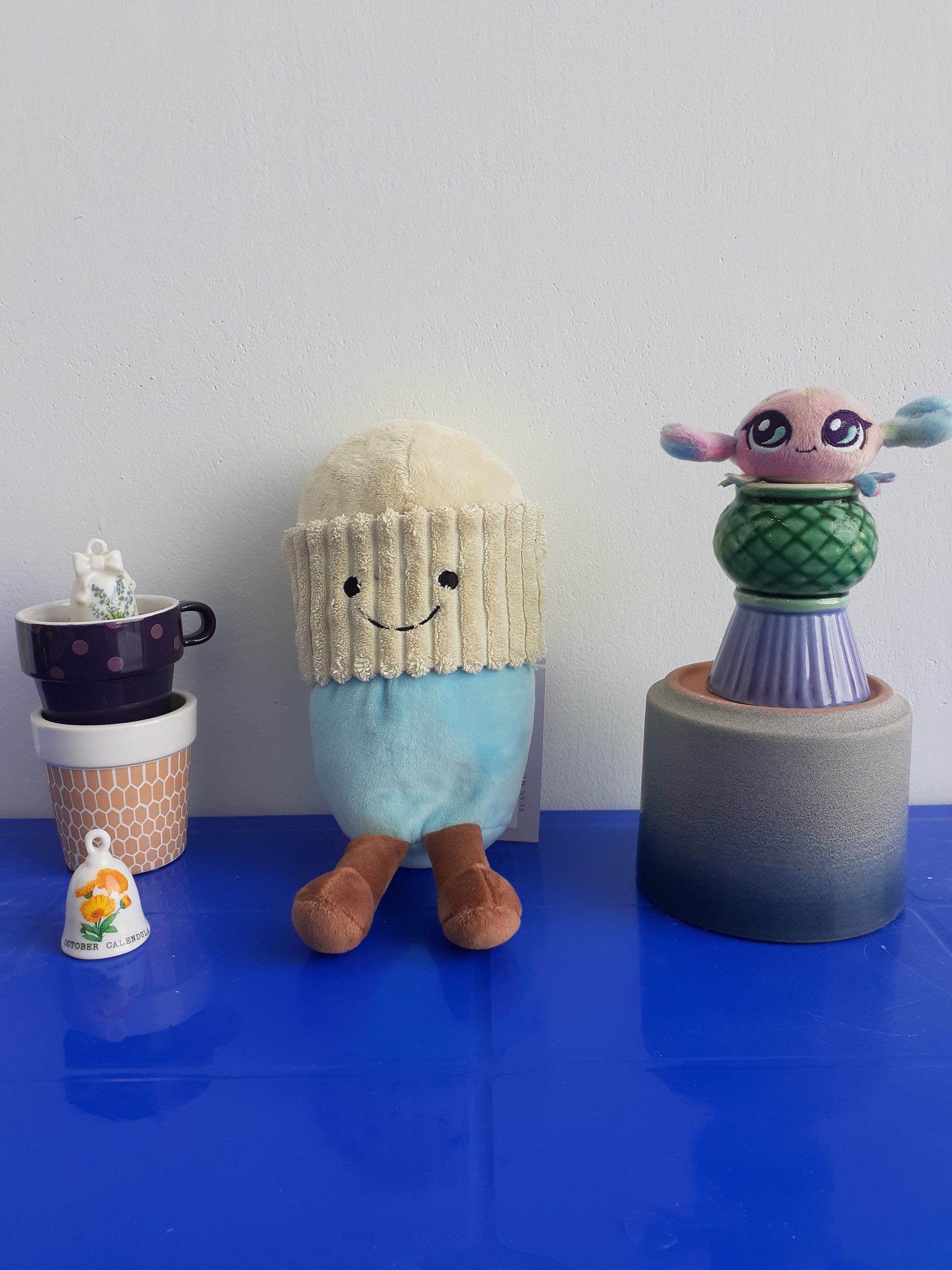 Design: The charm is designed to look like a miniature takeaway coffee cup with a cream-colored lid and a light blue base.
