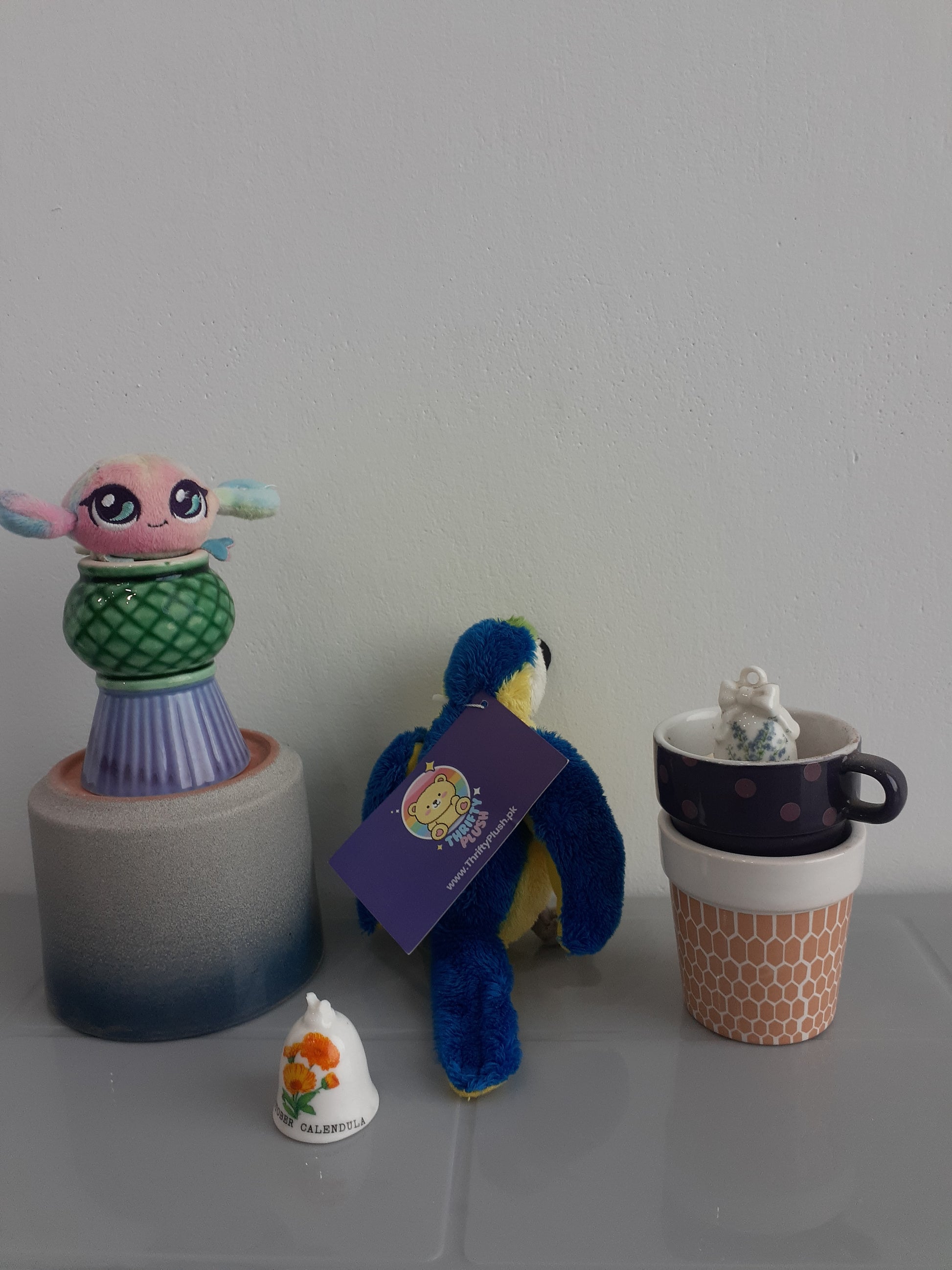 plush toy of a Blue and Gold Macaw, available at ThriftyPlush.pk. These types of plush toys are often designed to be soft and cuddly, and some may even have interactive features like repeating sounds or flapping wings. The blue and yellow coloration is typical of the Blue and Gold Macaw species. These toys can be great for children and bird lovers alike.