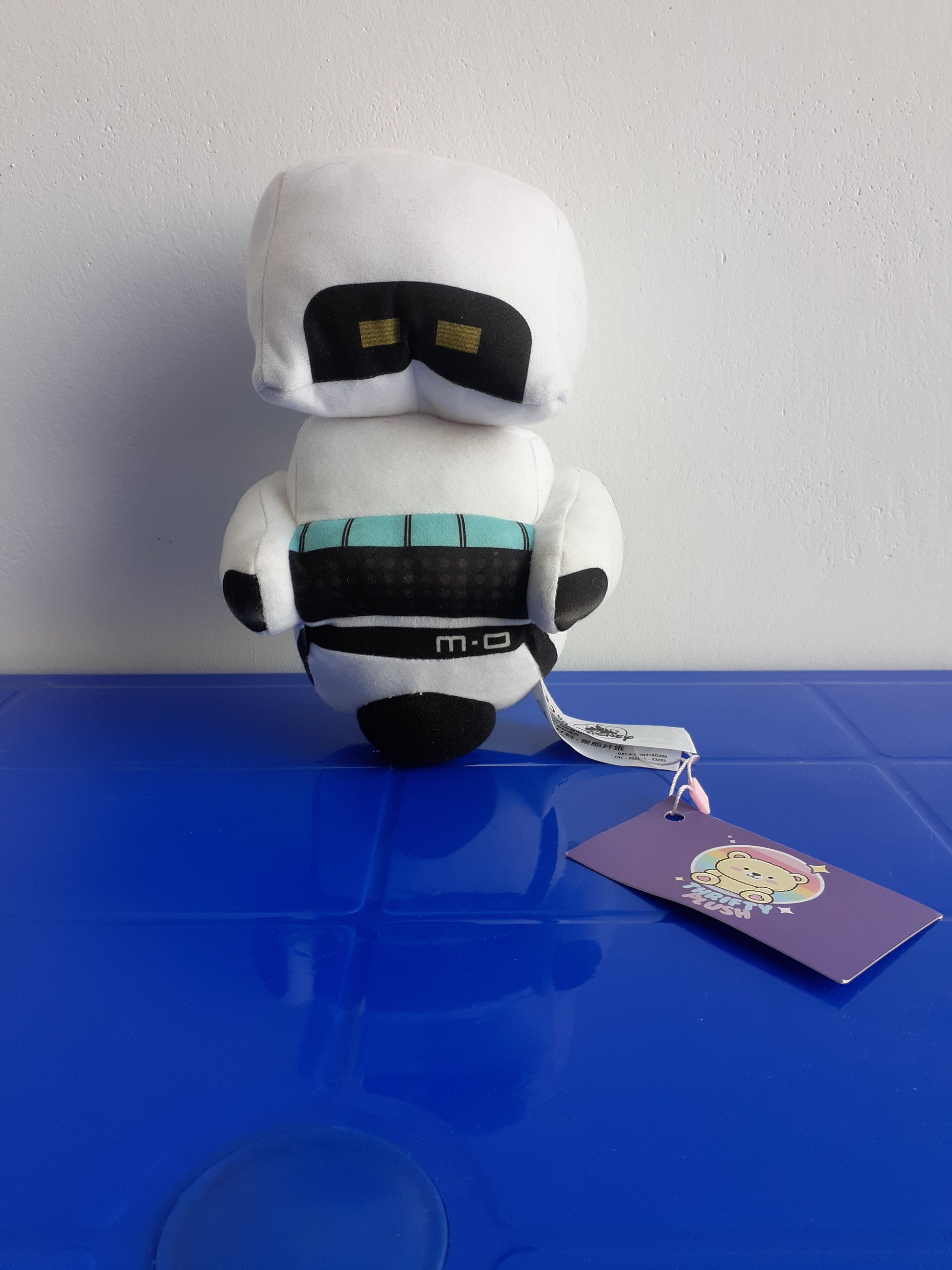 Appearance: White body with black and gold sensors for eyes, a blue and black midsection, and the letters "M-O" printed on the lower back.
