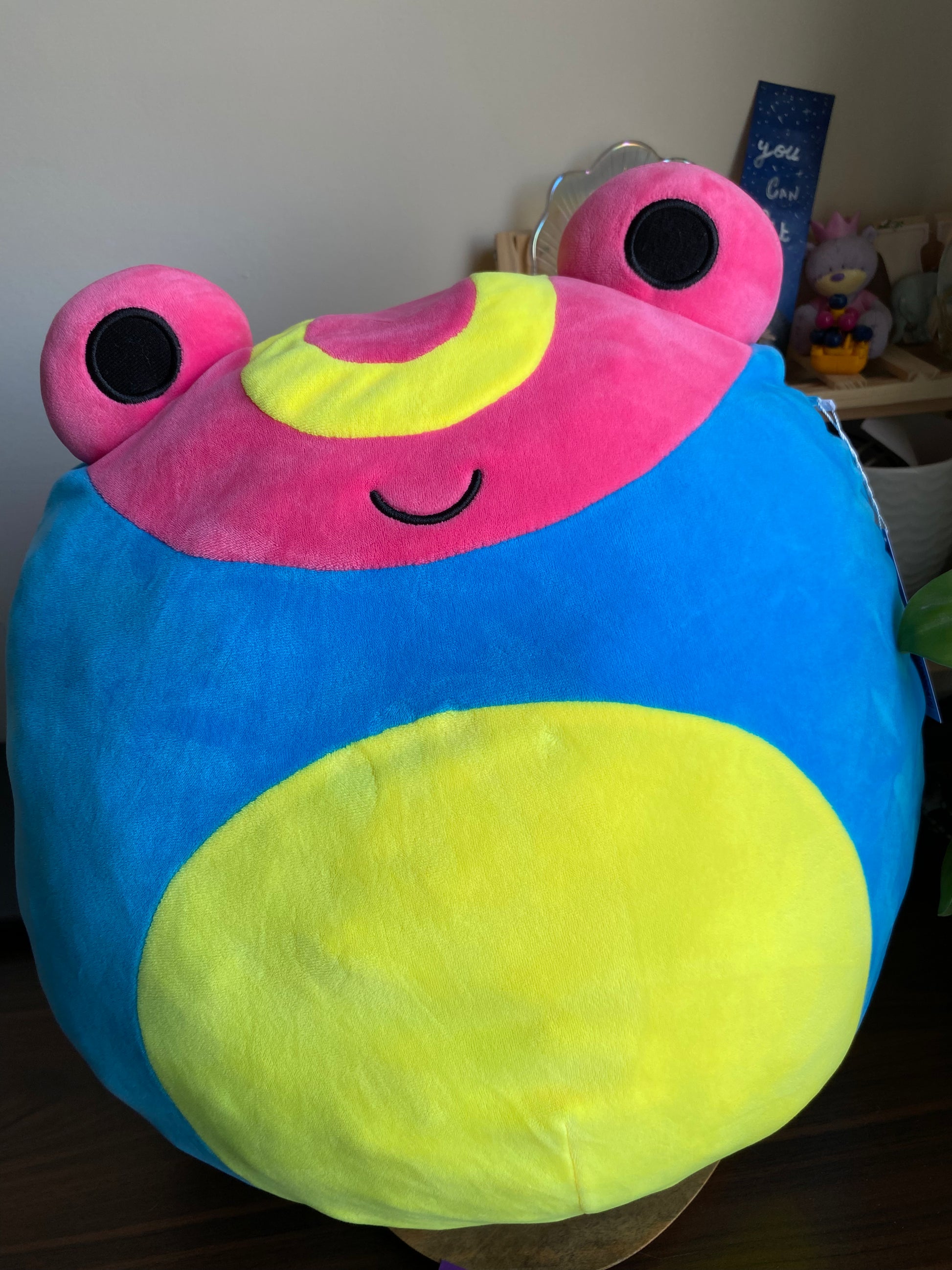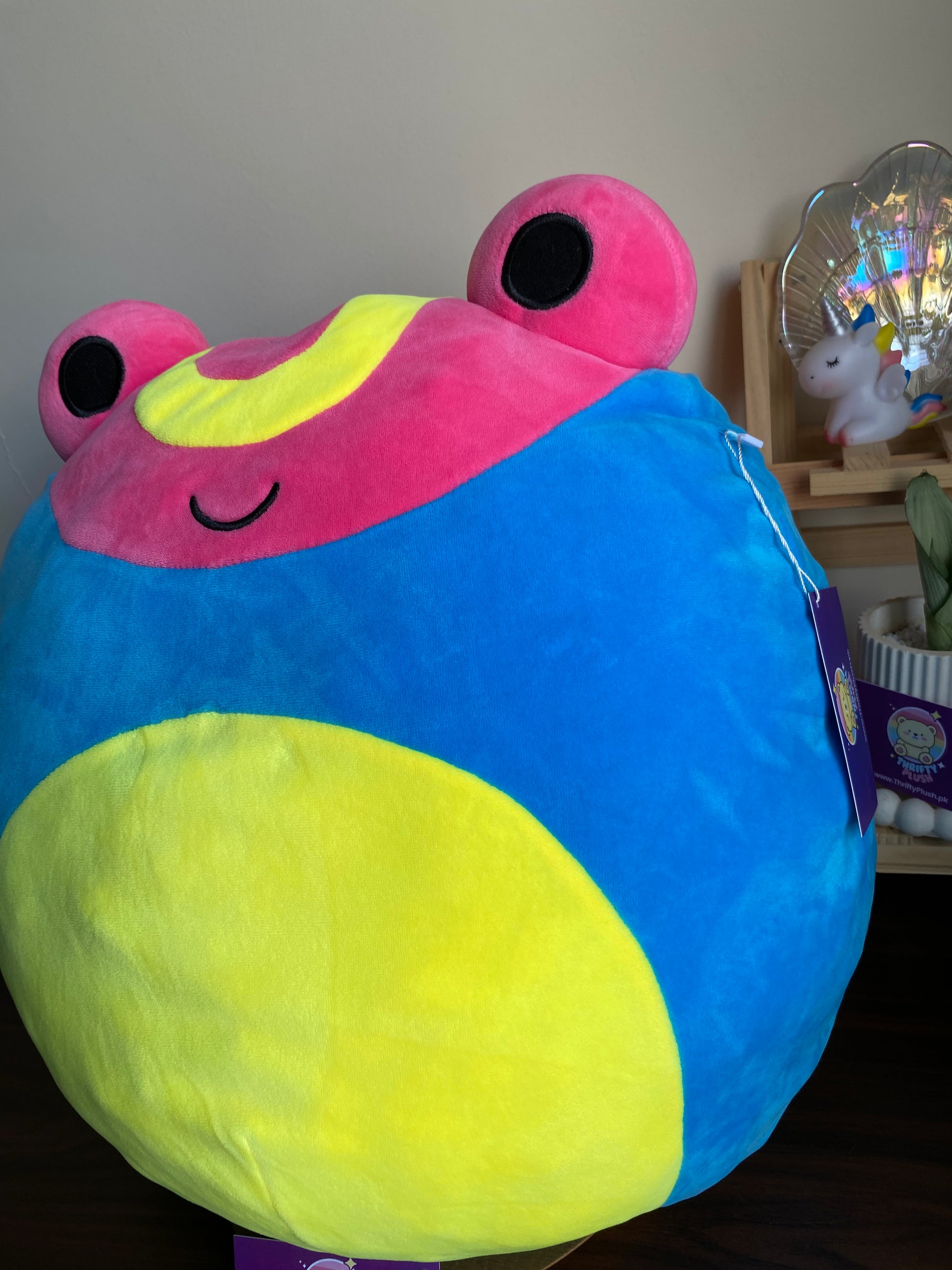 Bring home the Rare Squishmallows 16-Inch Colorful Frog Plush 🌈💛💙💖. With its vibrant yellow belly, blue body, and pink face, this ultra-soft frog is the perfect mix of cozy and cute.