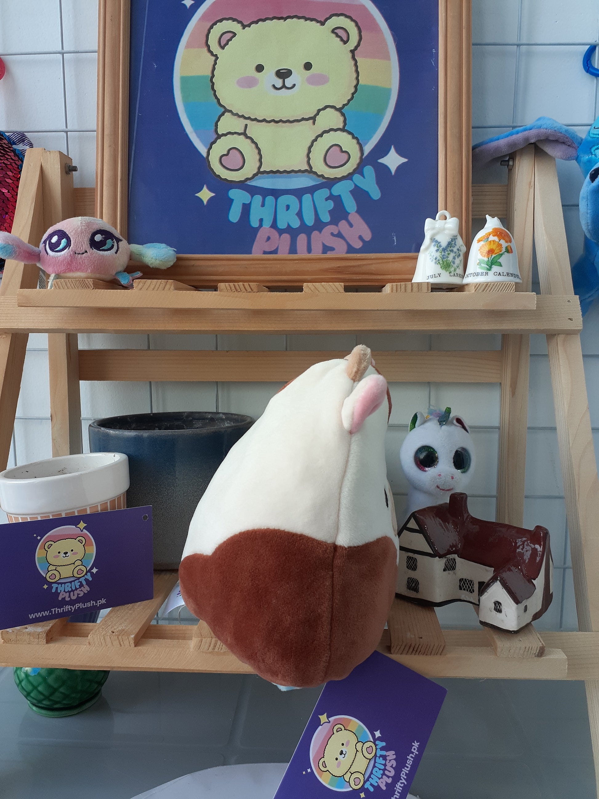 Design: Ronnie is a brown and white cow with a fuzzy belly, pink muzzle, and small, pale yellow horns.
