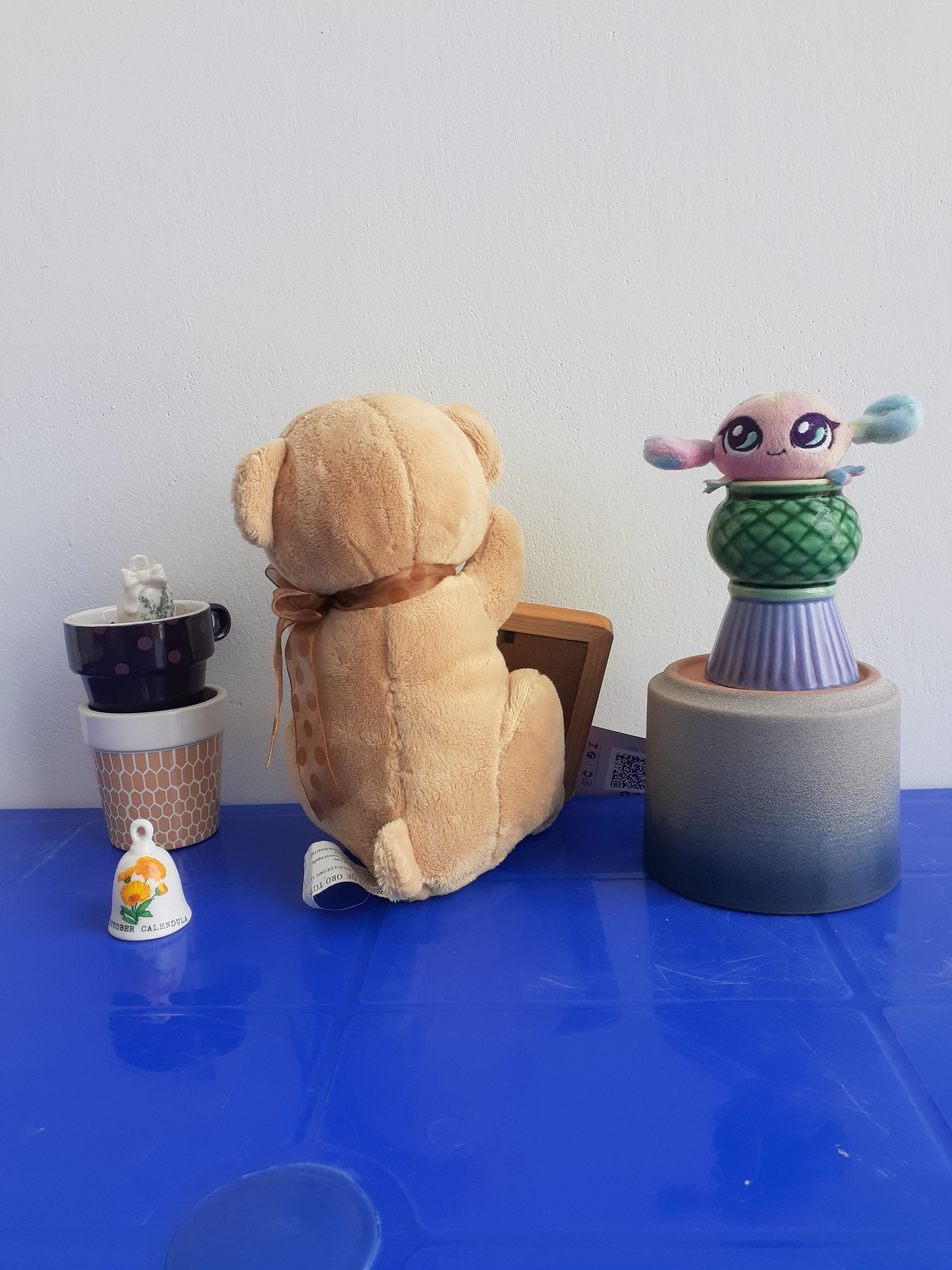 teddy bear, which is a stuffed toy in the form of a bear. Teddy bears are often given as gifts, especially to children, and are popular as comfort objects. They are named after President Theodore Roosevelt, who refused to shoot a bear during a hunting trip in 1902. The first teddy bears were created by Morris and Rose Michton in Brooklyn and Margarete Steiff in Germany.