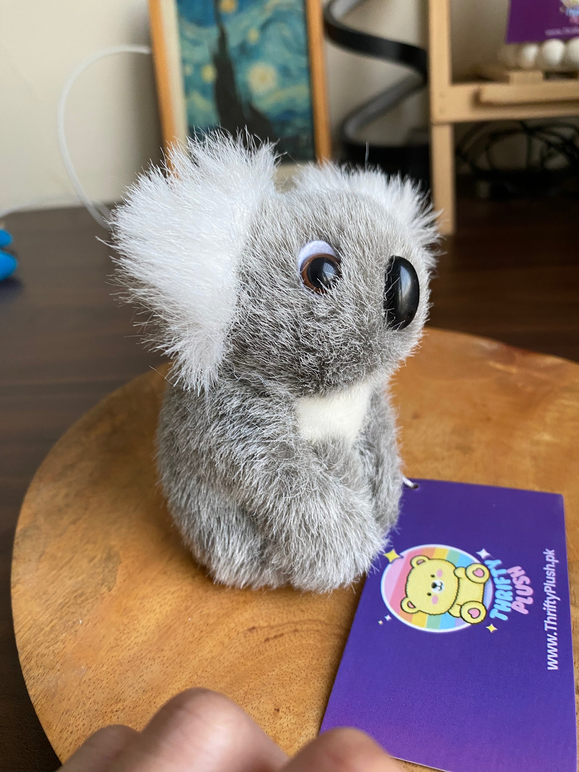 Crafted with ultra-soft grey fur, fluffy white ears, and bright glossy eyes, this little koala is perfect for gifting, decorating, or keeping as a pocket-sized comfort plush. Despite its mini size, it’s packed with personality — irresistibly cute, huggable, and high-quality.
