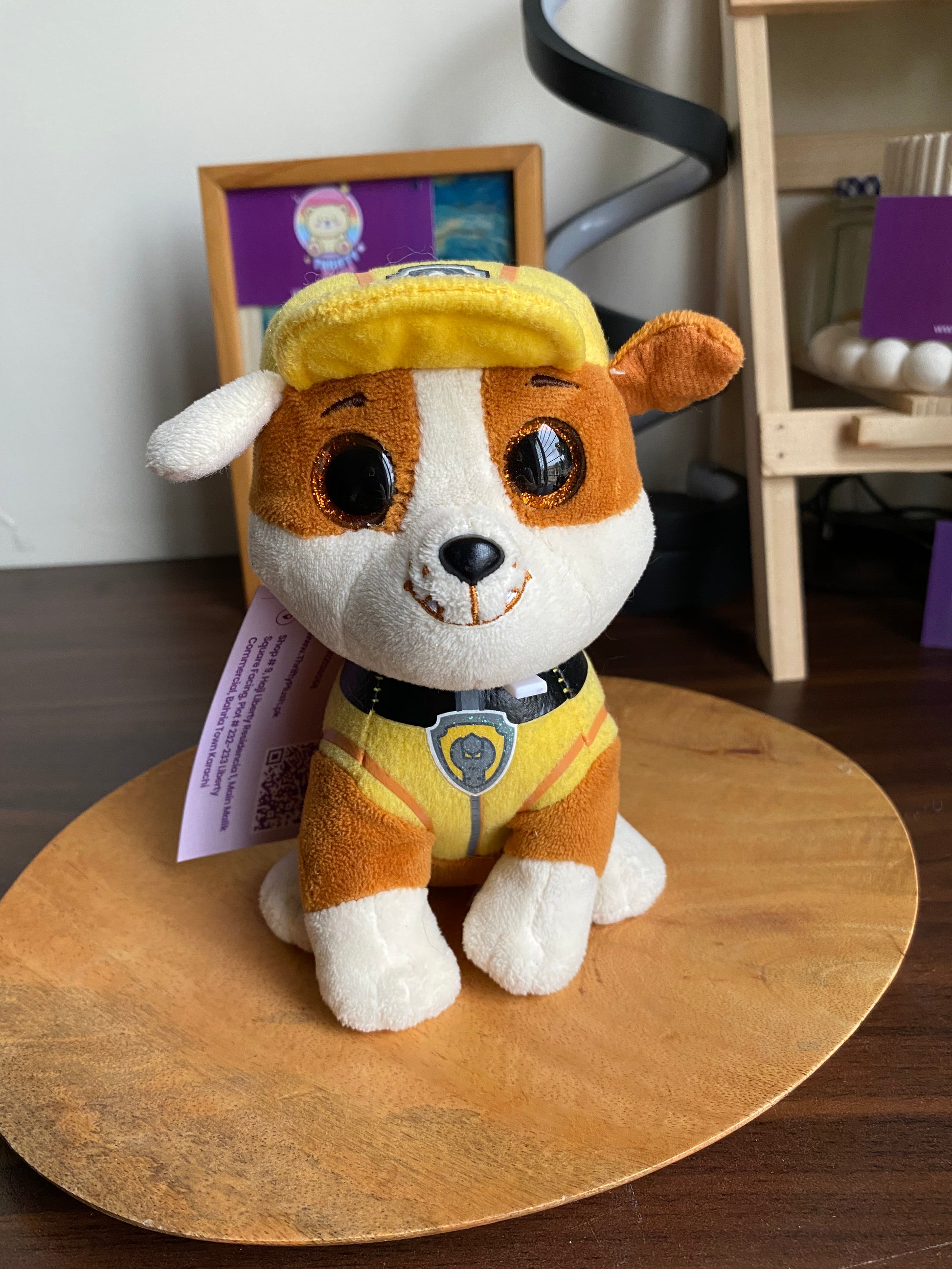 Bring home Rubble, the lovable bulldog from Paw Patrol, in this adorable Ty Beanie Boos plush version! Dressed in his signature yellow construction outfit, Rubble is soft, cuddly, and ready for big hugs. Perfect for Paw Patrol fans, this plush toy is great for playtime, bedtime, or collecting.