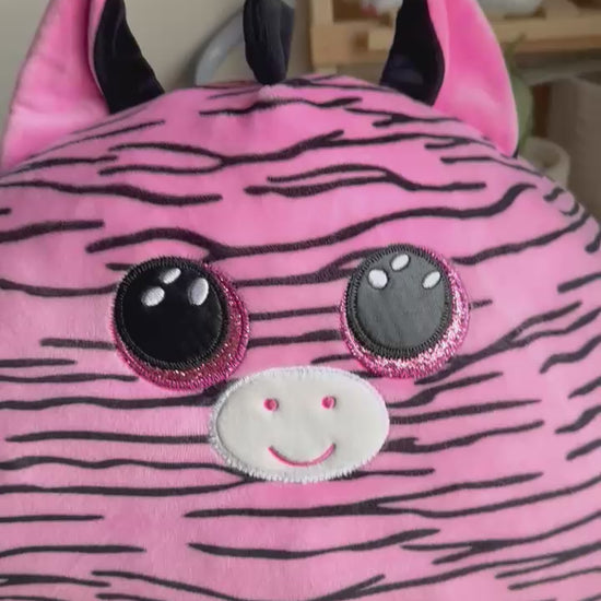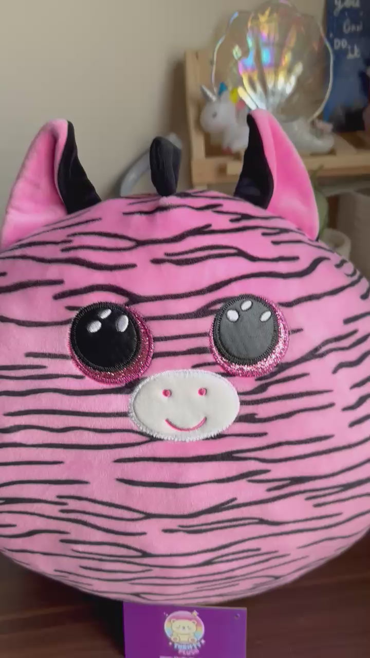 Bring home Zoey, the pink zebra from the Ty Squish-a-Boos collection! With her soft, squishy texture, big sparkling eyes, and cute black mane, she’s perfect for cuddles, naps, or adding a splash of fun to any room. Whether as a snuggly friend or a playful pillow, Zoey is ready to brighten your day with her charming stripes and huggable softness.