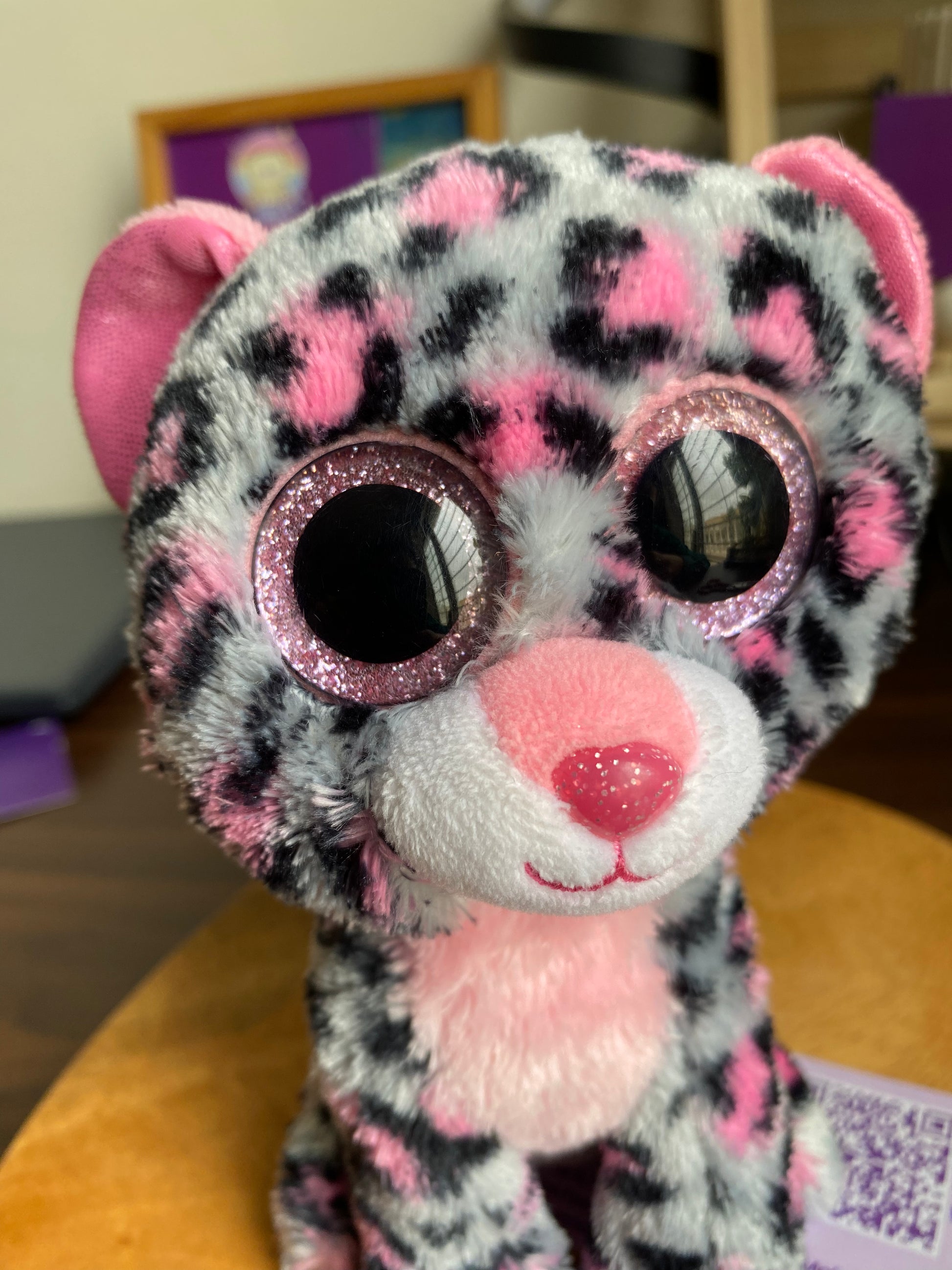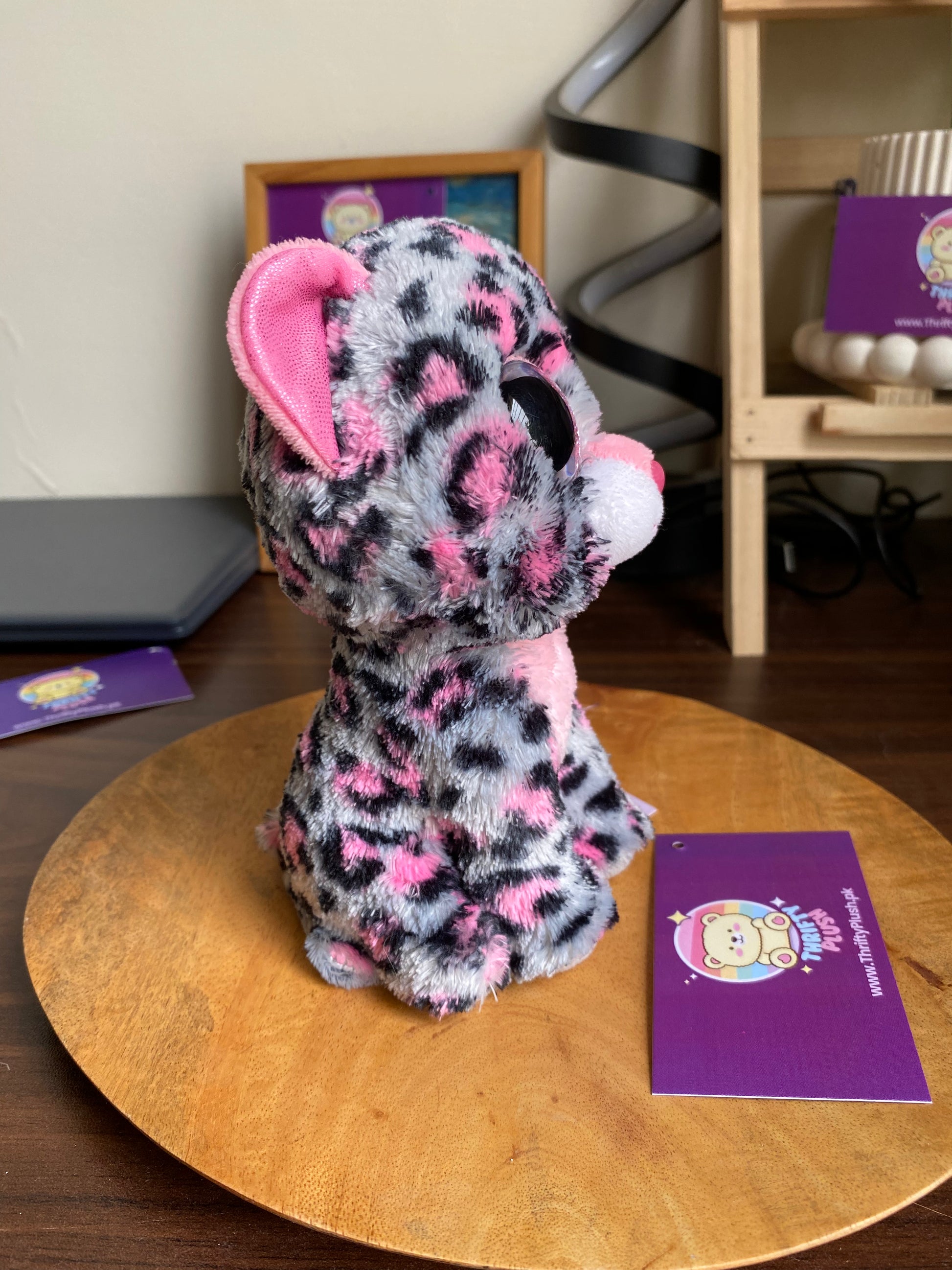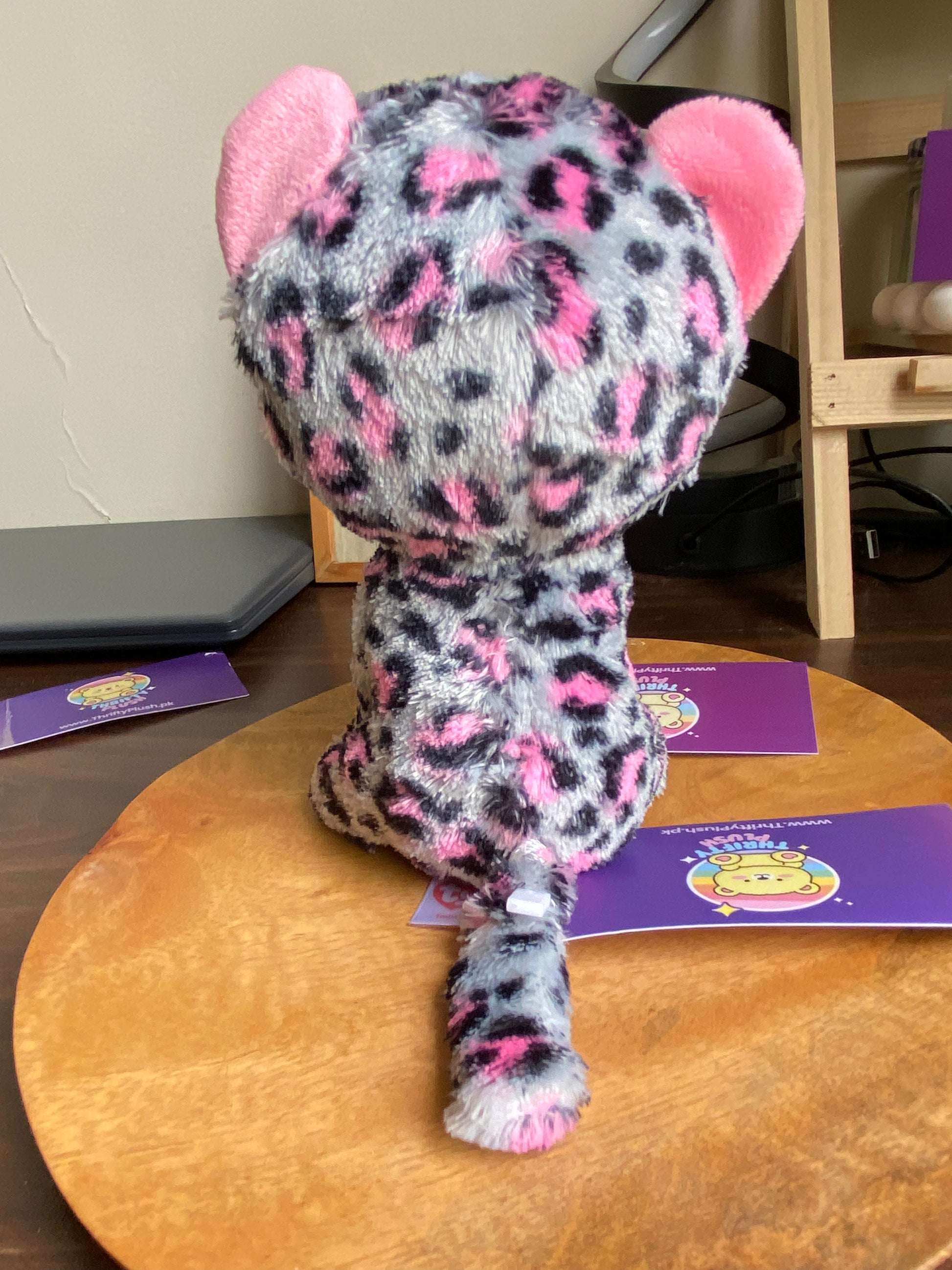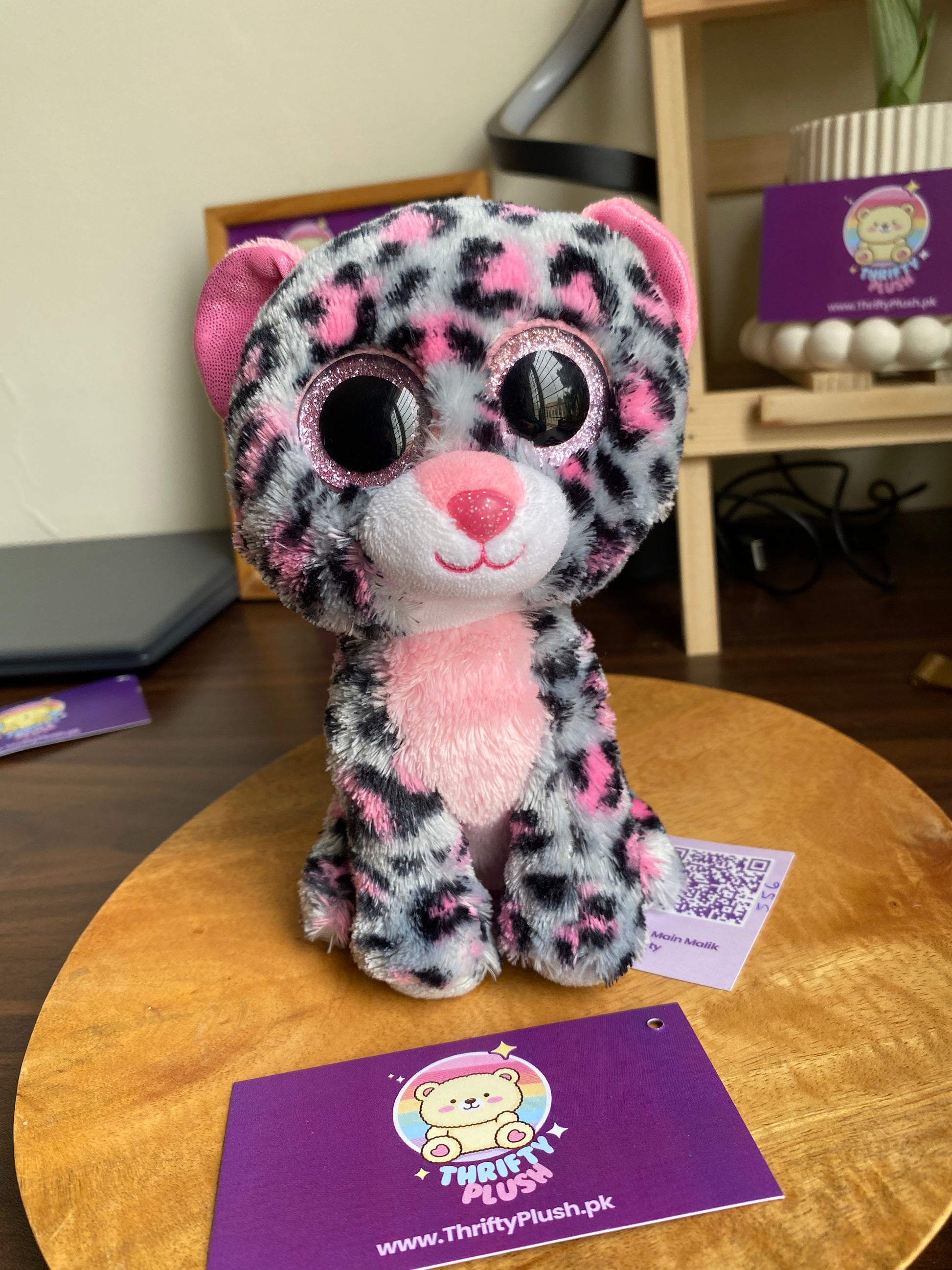 TY "Tasha" Pink & Black Leopard Beanie Boo Baby With Sparkly Eyes. 6”
